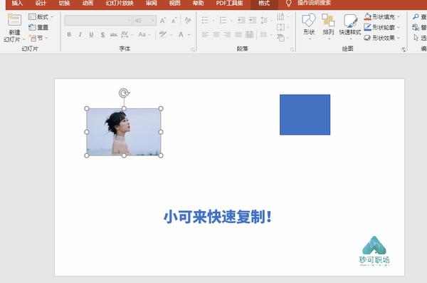 复制的方法不仅适用于文本内容,图片、形状都可以使用。
